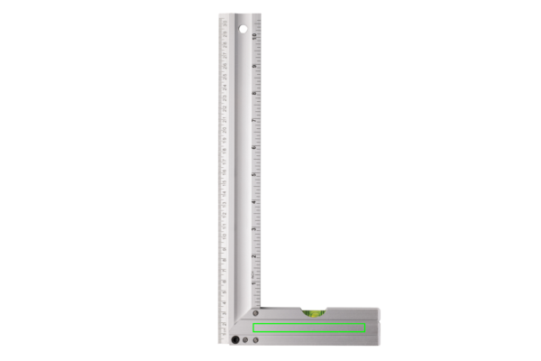 Fyrkantslinjal med integrerat vattenpass som passar perfekt för att mäta hörn och rita rutor. Dubbelsidig tryckt gradering i CM (30) och tum (10). Vattenpass noggrannhet 0,5mm.