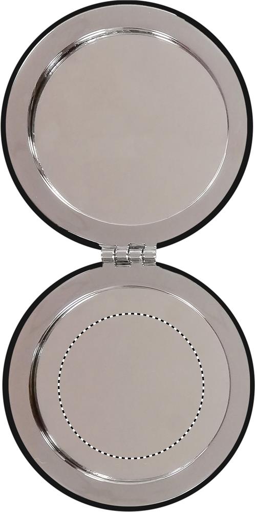 Fickspegel i rund form med PU omslag. Dubbla speglar invändigt och magnetförslutning.